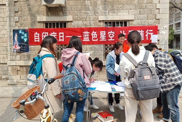 有这样一个群体,他们生活在心灵的堡垒中,不轻易打开心门,宛如折翼的天使,亟待社会的关怀。他们是自闭症儿童。2019年4月2日是全国第十二个世界自闭症关注日,为增进同学们对自闭症这一群体的认识,山东大学唐仲英爱心社在济南各校区开展以自闭症为主题的“蓝色星空梦”专题活动。