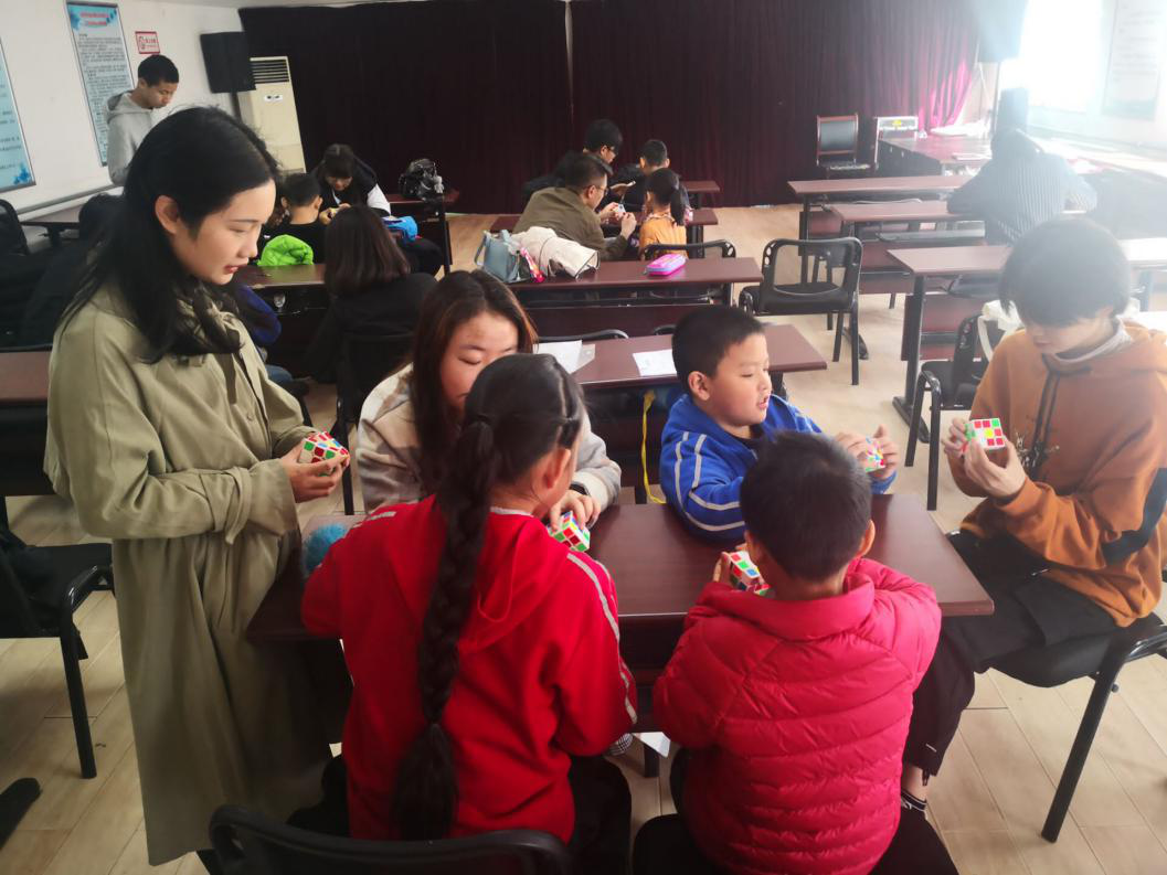 爱心家教在进行内容变更之后,获得了很大成效。不仅让孩子们感受到了活动的趣味性,也充实了志愿者的志愿经历,为下一次志愿活动的开展起到了巨大的推动作用。在兴趣课活动中,志愿者们会教小朋友们了解魔方的结构、魔方公式符号,比如说魔方的单个块不能移动以及一些简单的解法之类。小朋友们也会亲手尝试游戏的快乐,当听到他们说“姐姐,你们好厉害啊!大学是不是很好玩啊,等我长大之后也要像姐姐一样变得超级厉害。”能给孩子们带来成长的鼓励,这让志愿者们十分欣慰。