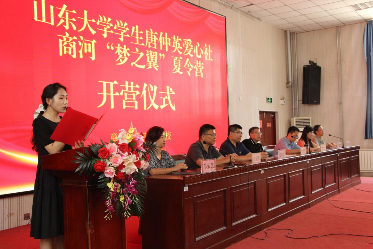7月14日下午,山东大学学生唐仲英爱心社商河“梦之翼”夏令营开营仪式在商河县滨河实验学校顺利举行。商河县教育和体育局党组副书记刘学珍、教育科科长王安明,商河县滨河实验学校校长王洪升、副校长单荣慧,山东大学仲英青年学者张井志、贾传宝,山东大学学生唐仲英爱心社指导老师宋烨,以及来自山东大学学生唐仲英爱心社的35名教员和滨河实验学校师生代表参加仪式,仪式由滨河实验学校团委书记陶晶主持。